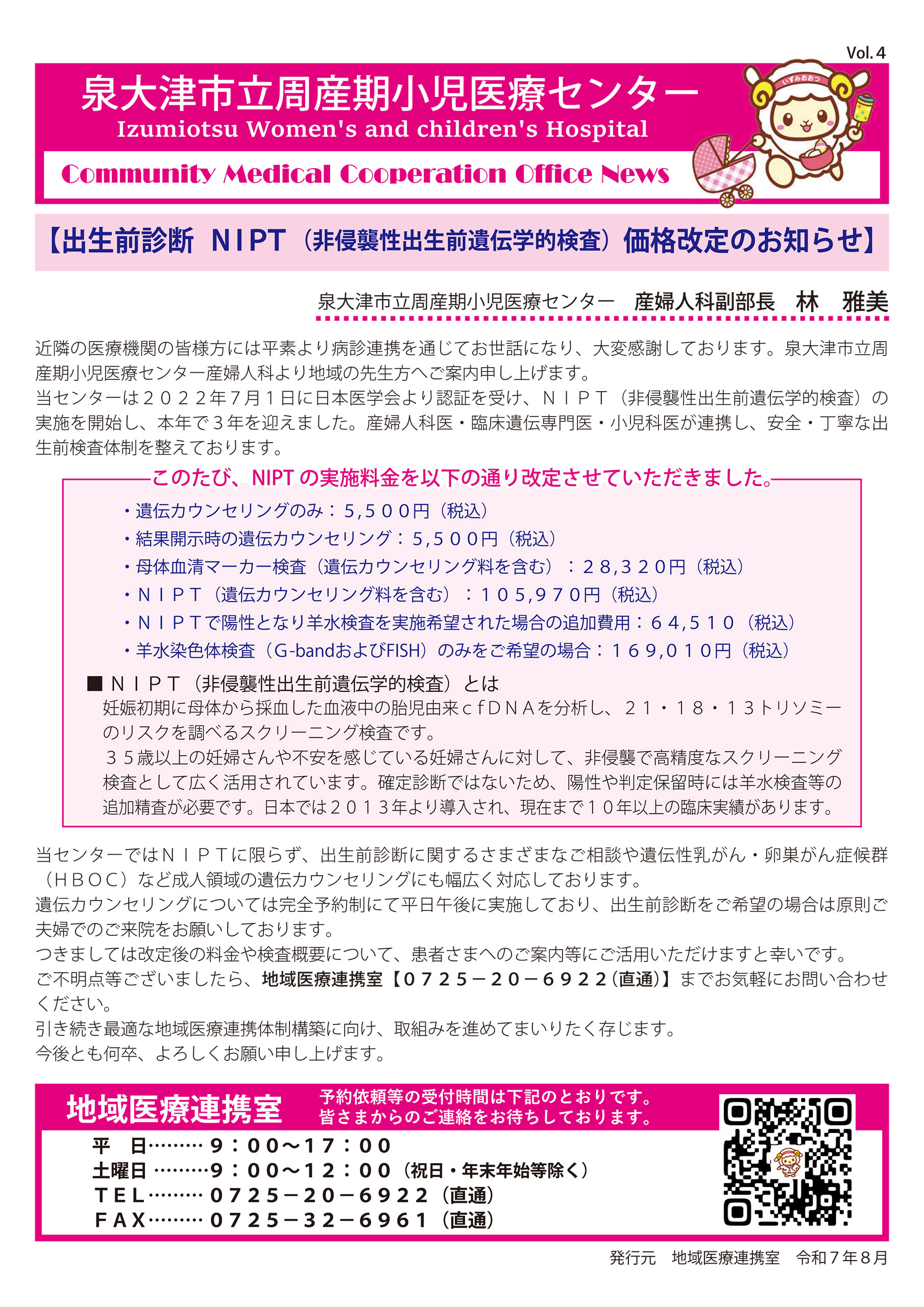 診療について 外来受付について 外来担当医・受付時間 診療予約について 診療科・部門・病棟一覧 救急について 各種検診(健診)のご案内 入院・お見舞いのご案内 自費料金について 手術を受ける方へ 当院について ご挨拶 理念・倫理 病院概要 病院沿革 医療安全管理指針 病院指標 病院年報 計画等 個人情報保護方針 地域の皆様へ 市民向け各種講座 地域医療連携室 経営比較分析表 病院事業経営強化プラン 院内統計 予算・決算 アクセス 交通アクセス フロアガイド 0725-32-5622(代表) 受付時間8:30~11:30 (診療時間9:00~) 検索項目: 地域医療連携室ニュース バックナンバー vol.004 2025年8月 vol.003 2025年05月 vol.002 2025年03月 vol.001 2024年12月 〒595-0027 大阪府泉大津市下条町16番1号 TEL. 0725-32-5622(代表) 検索項目: 診療について 外来受付について 外来担当医・受付時間 診療予約について 各種検診(健診)のご案内 救急について 手術を受ける方へ 診療科・部門・病棟 診療科一覧 部門一覧 病棟一覧 入院・お見舞いについて 入院のご案内 お見舞いについて 医療関係者の方へ 採用情報 アクセス 交通アクセス フロアガイド 当院について ご挨拶 理念・倫理 病院概要・沿革 医療安全管理指針 病院指標・年報・計画等 地域の皆様へ 市民向け各種講座 地域医療連携室 経営比較分析表 病院事業経営強化プラン 院内統計 予算・決算 > このサイトについて > サイトマップ > 個人情報保護方針 > 予算・決算 ©泉大津市立周産期小児医療センター